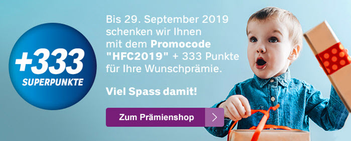 Bis zum 29.9.2019 schenkt dir Coop mit dem Promocode „HFC2019“ + 333 Superpunkte für deine Wunschprämie.