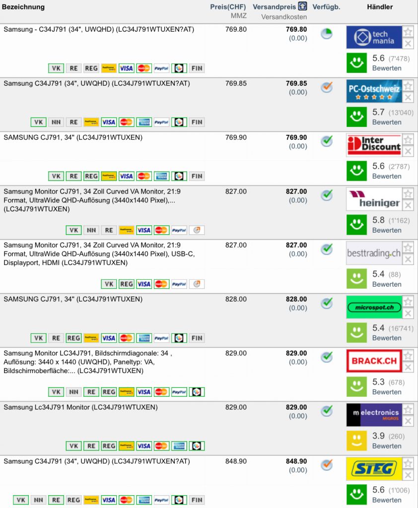 Bei digitec im Tagesdeal gibt es heute den 34“ 1440p curved Monitor SAMSUNG 34CJ791 für 649.- CHF.