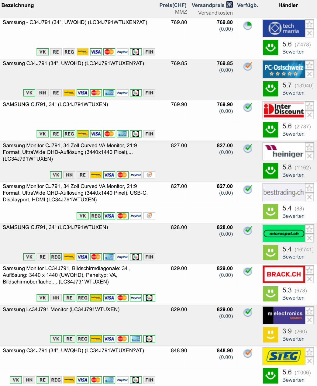 Bei digitec im Tagesdeal gibt es heute den 34“ 1440p curved Monitor SAMSUNG 34CJ791 für 649.- CHF.