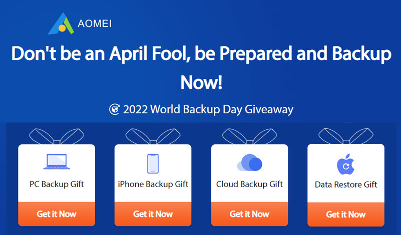Der Software-Hersteller Aomei verschenkt anlässlich des „World Backup Day“ am 31. März momentan Software zur Datensicherung im Wert von rund CHF 100 für Computer und Handy (die Aktion läuft noch bis zum 2. April 2022).