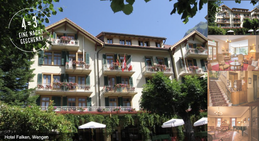 Bei ALDI Suisse Tours gibt es derzeit ein attraktives Angebot fürs Berner Oberland. So übernachtet man 4 Nächte im 3*-Hotel Falken in Wengen und bezahlt pro Person CHF 294 inklusive Halbpension.