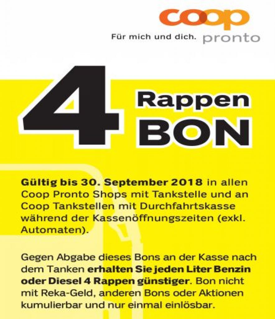 Bei Coop Pronto Tankstellen kann man von einem Rabatt von 4 Rappen pro Liter profitieren.
