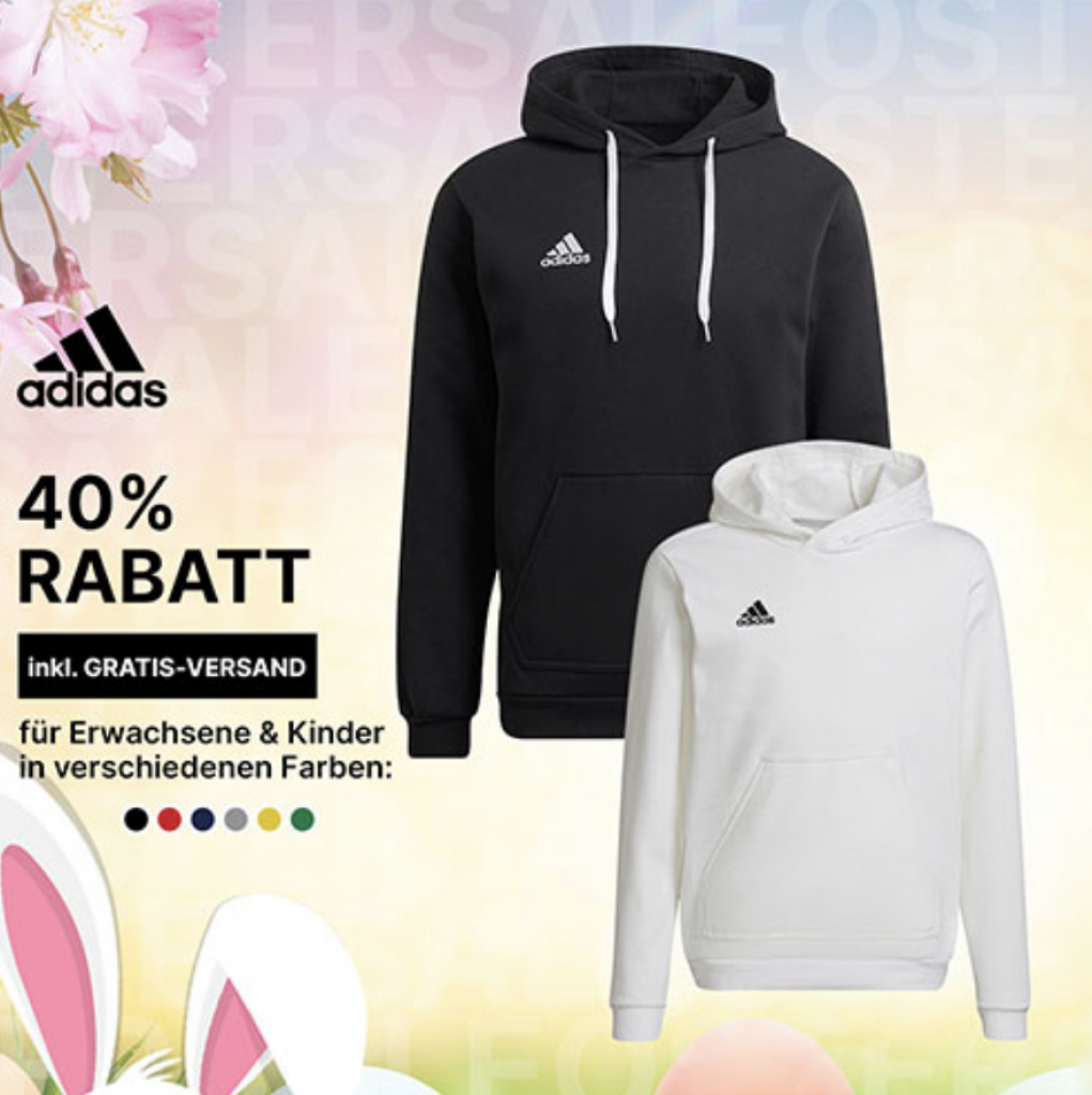 Frohe Ostern! Hol dir nur dieses Wochenende den brandneuen adidas Kapuzenpullover Entrada 22 aus Baumwolle um 40% GÜNSTIGER! Für Erwachsene CHF 30,00 statt CHF 50,00 & für Kinder nur CHF 27,00 statt CHF 45,00 und zusätzlich sogar Kostenlos zu dir nach Hause geliefert! Aber nur bis Ostersonntag! FIRST COME, FIRST SERVED.