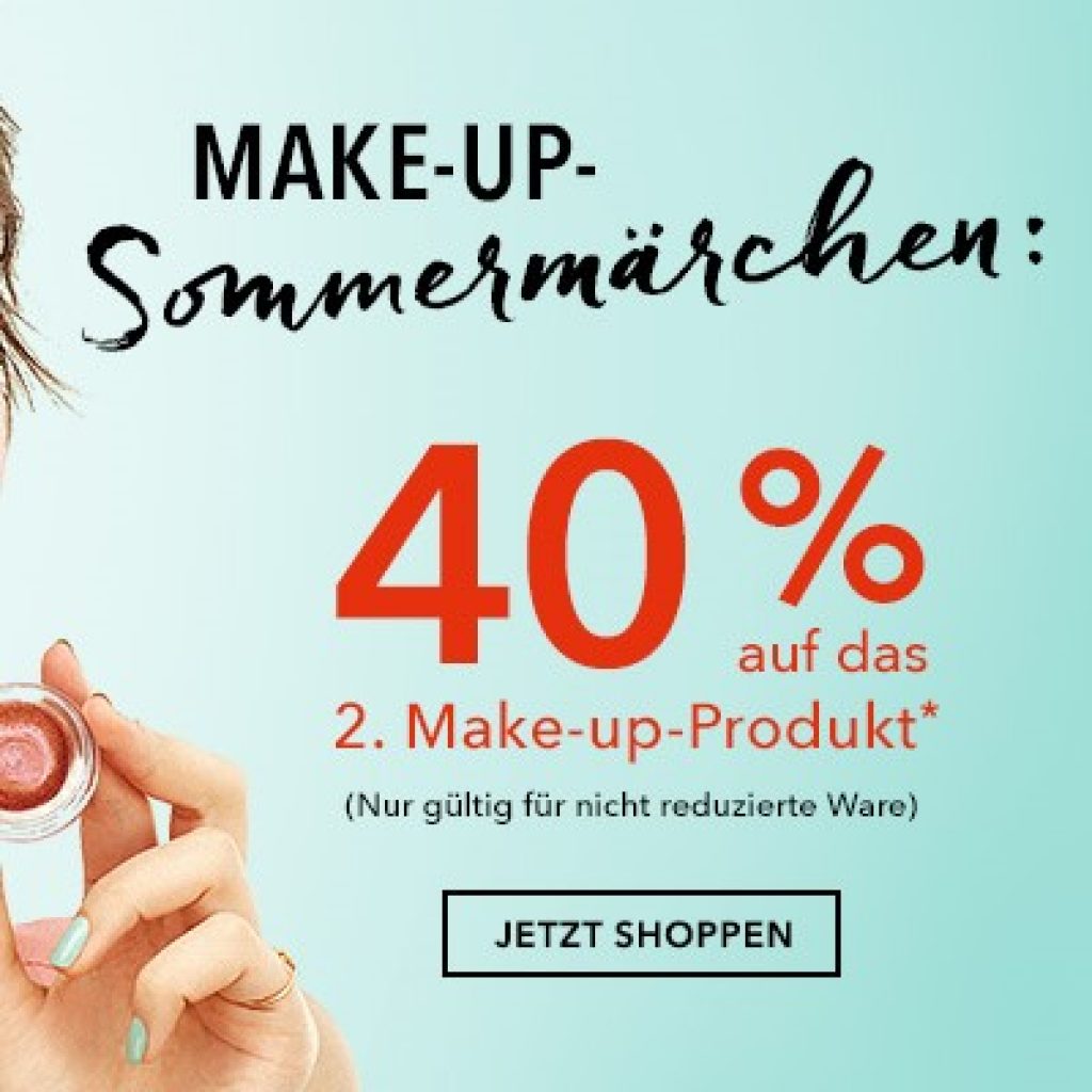 Douglas verhilft dir zu neuem Make-Up! Dazu kannst du von einem Rabatt von 40% auf das zweite Produkt profitieren, wenn du zwei Artikel aus dem Bereich Make-Up kaufst. Der günstigere Artikel wird reduziert. Die Aktion gilt allerdings nur für nicht reduzierte Ware und die Marke Dior ist ausgenommen. Mit anderen Aktionen ist diese hier nicht kumulierbar. Sie läuft noch bis einschliesslich Sonntag, den 3. September.