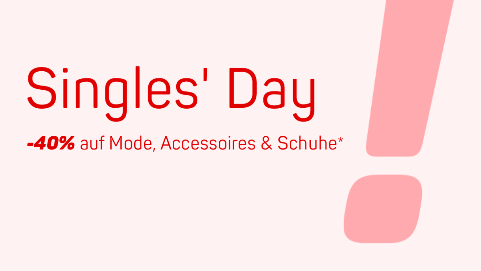 Wir feiern den Singles Day – feiern Sie mit uns und sichern Sie sich 40% Rabatt auf Mode, Accessoires und Schuhe!
