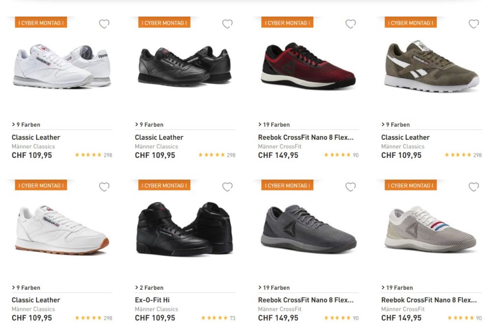 Bei Reebok erhält man nur noch heute mit dem Gutscheincode CM40 satte 40% Rabatt auf eine recht grosse Auswahl (vor allem an Schuhen) für Damen, Herren und Kinder.