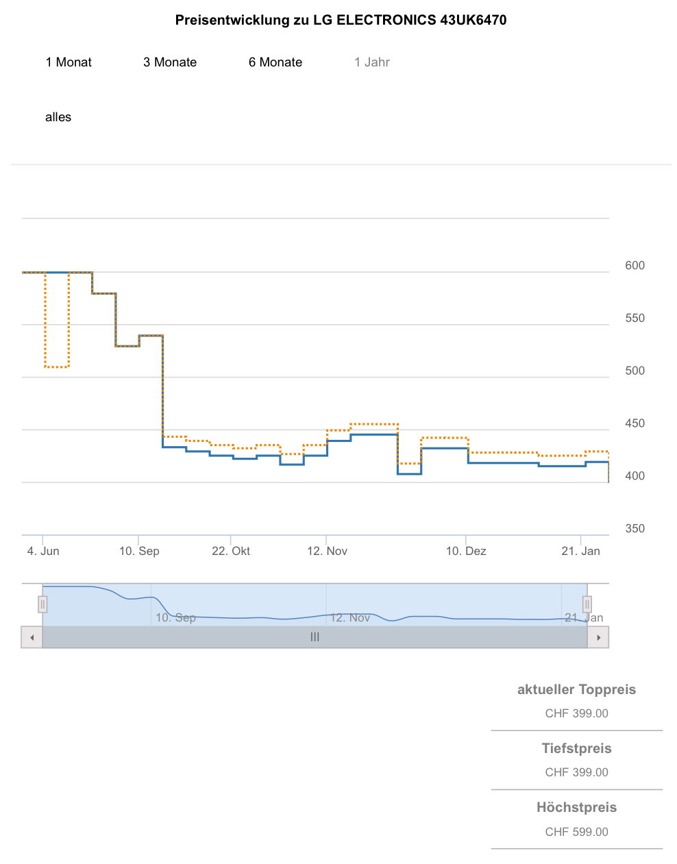 Gemäss toppreise war der bestprice bislang bei 417.50 CHF, der zweitbeste Preis liegt aktuell bei 429.- CHF.