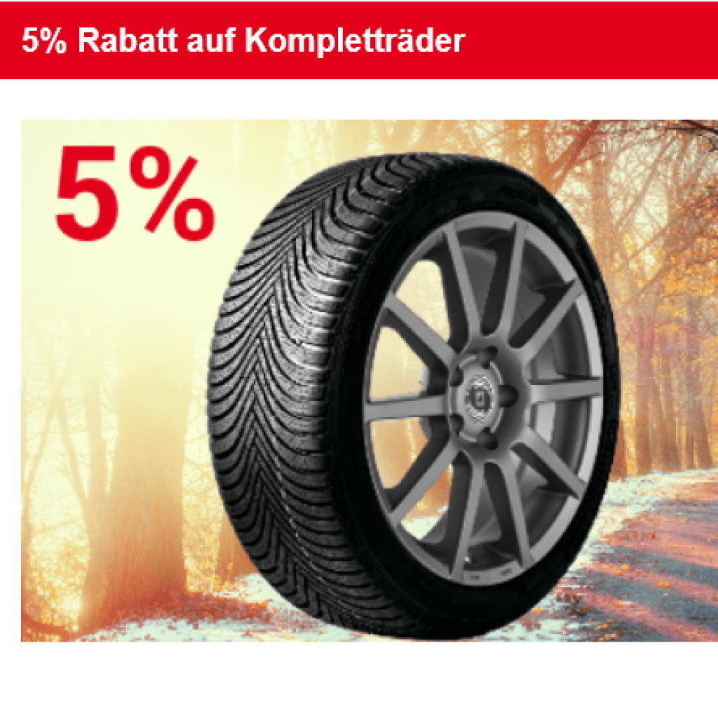pneuexperte.ch bietet dir aktuell Kompletträder um 5% reduziert an! Um von dem Rabatt profitieren zu können, musst du den Code „NLKR917CH“ an der Kasse angeben. Das ist dir noch bis einschliesslich Dienstag, den 3. Oktober, möglich.