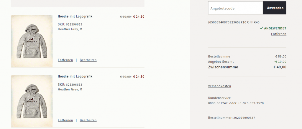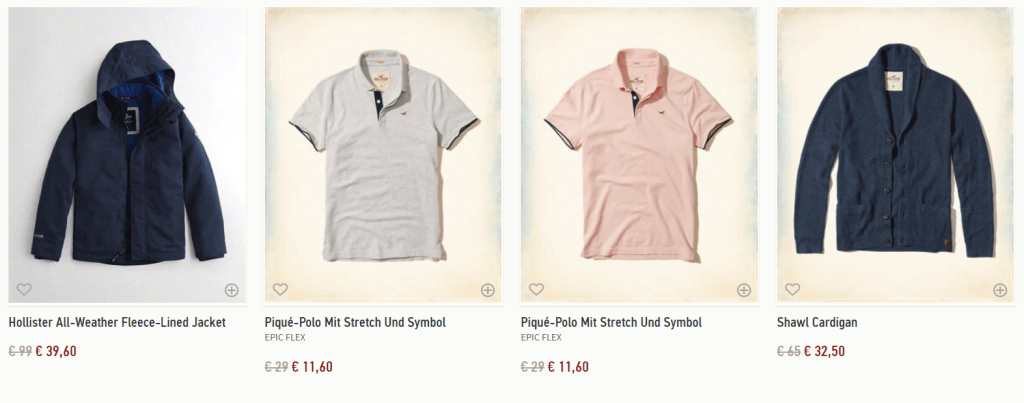 Noch bis am Sonntag gibt’s im Onlineshop von Hollister zwischen 50-70% Rabatt auf alle Artikel im SALE. Melde dich zudem zum „Cali Club“ an, und erhalte einen Gutschein von 10 EUR ab 40 EUR Einkaufswert.