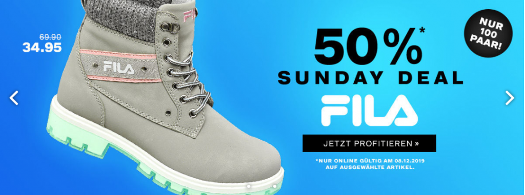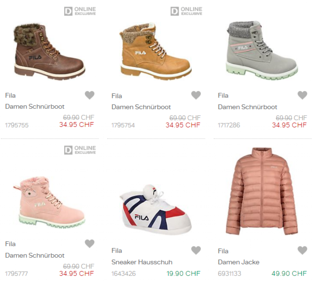 Bei Dosenbach sind nur heute ausgewählte Fila Artikel um 50% reduziert.