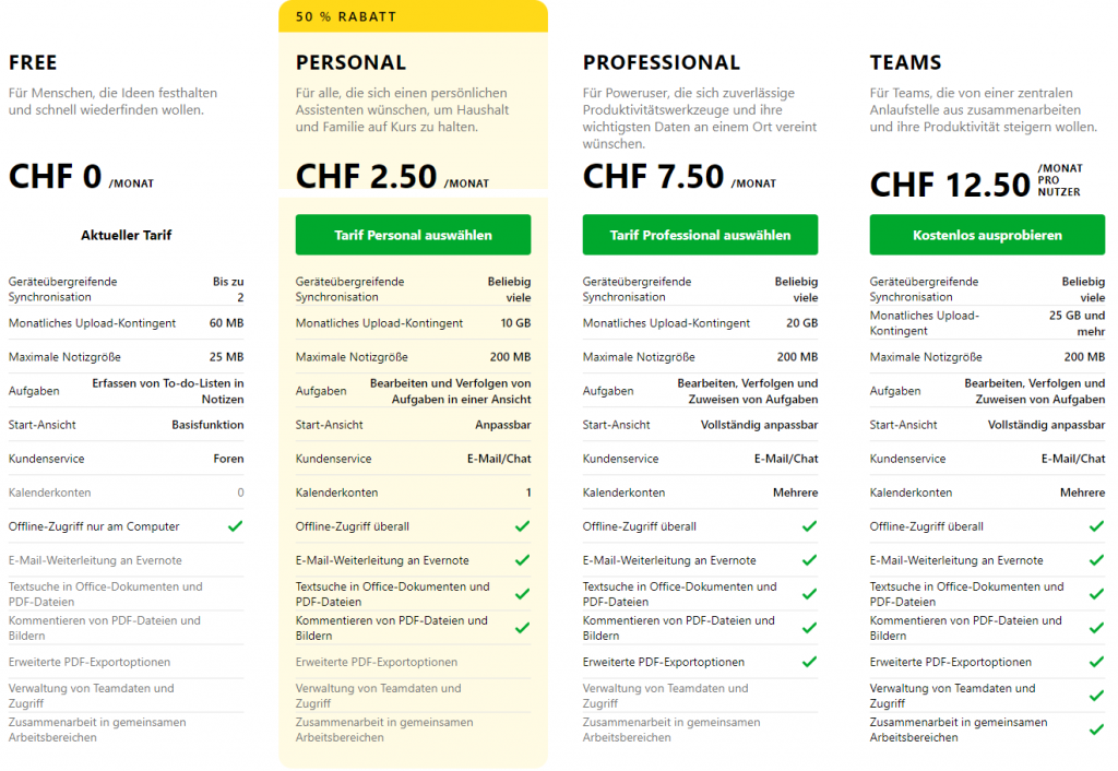 Nischen-Deal 🙂 - 50% auf Evernote „Personal“ wie immer am Anfang vom Jahr.