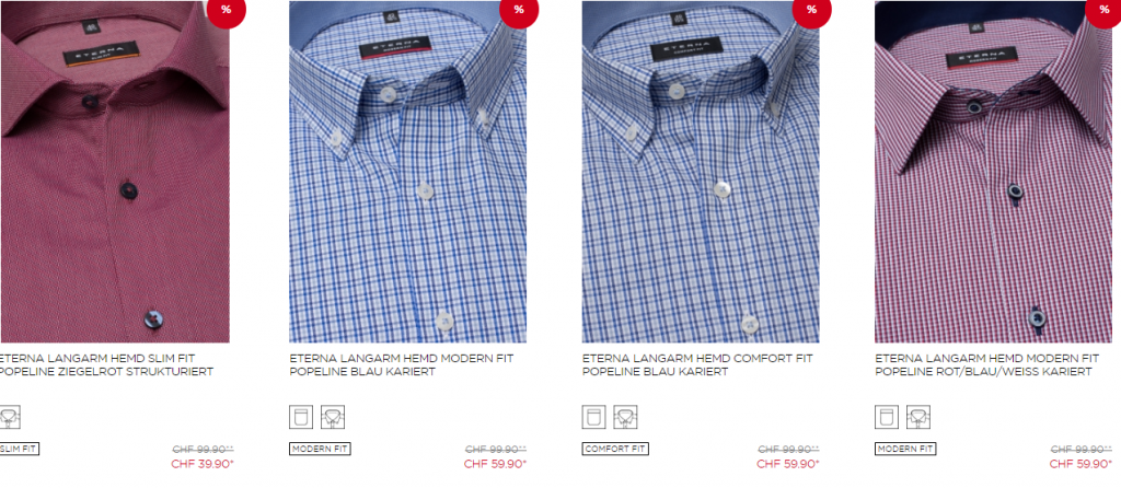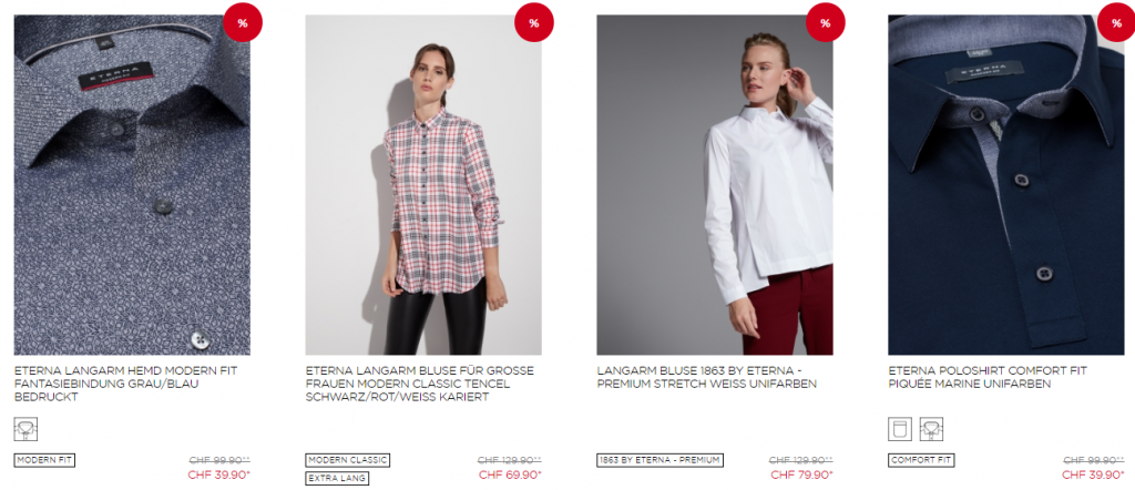 Bei Eterna gibt es momentan 50% auf Hemden ab CHF 39.90 und Blusen ab CHF 49.90.