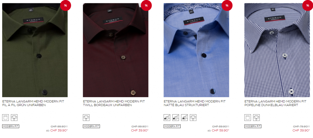 Bei Eterna gibt es momentan 50% auf Hemden ab CHF 39.90 und Blusen ab CHF 49.90.