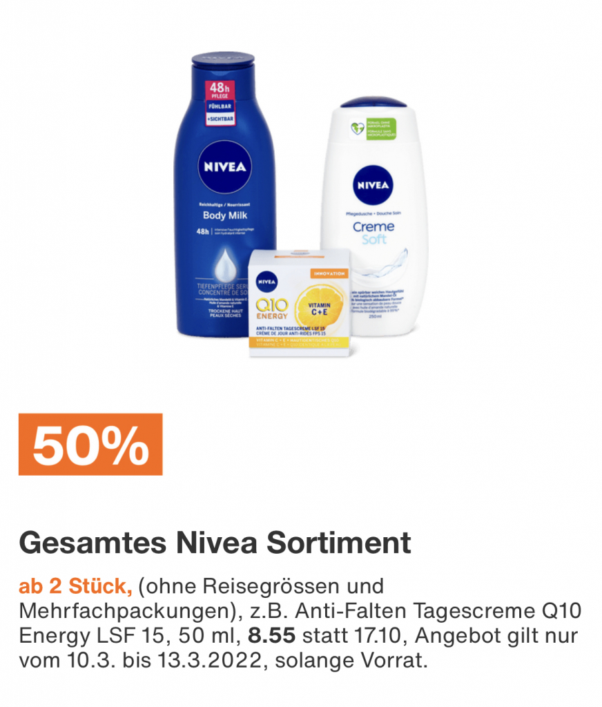50% auf das Nivea Sortiment