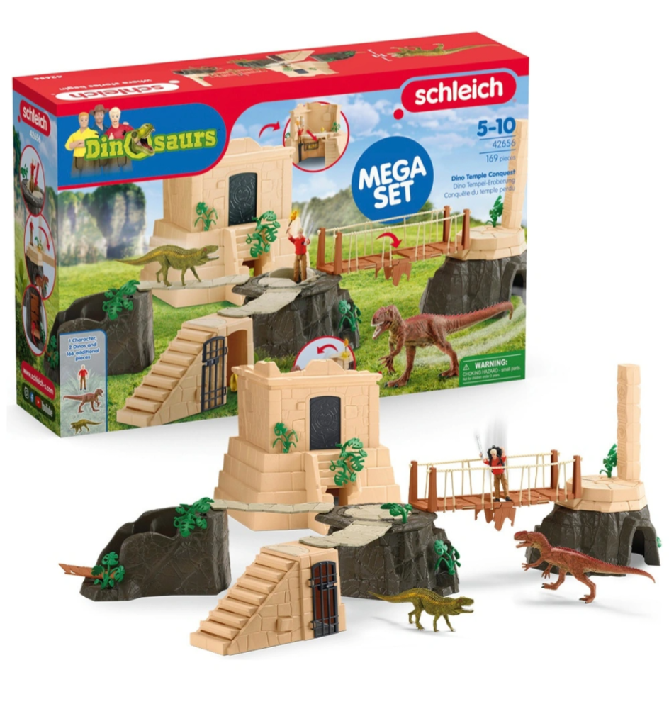 Bei der Dino Tempel-Eroberung muss Flynn auf seinem Weg zum Schatz an den gefährlichen Dinos vorbei, die den Tempel bewachen. Der kann jedes Mal neu zusammengesetzt werden und sieht deshalb immer anders aus. Unterwegs muss Flynn viele Rätsel lösen: In Geheimverstecken sind Schlüsselteile verborgen. Richtig zusammengesetzt kann er damit den Tempel öffnen. Ob ihm das gelingt?