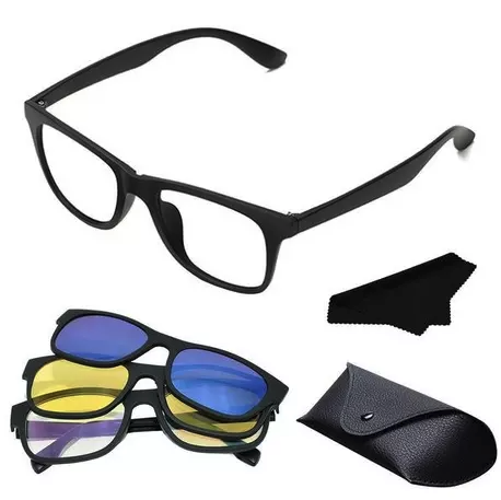 - Praktische 3-in-1-Brille mit zwei Paar Zusatzgläsern, ein Reinigungstuch und ein Etui