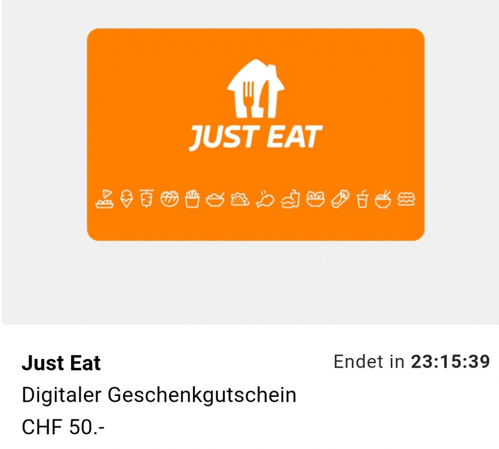 „Der Rabattcode muss bis zum 31.12.23 für einen JustEat Gutschein im Wert von mindestens CHF 50 in der TWINT Partner Funktion „Digitale Gutscheine“ eingelöst werden. Dabei ist die Eingabe des erhaltenen Rabatt-Codes vor der Zahlung nötig.“