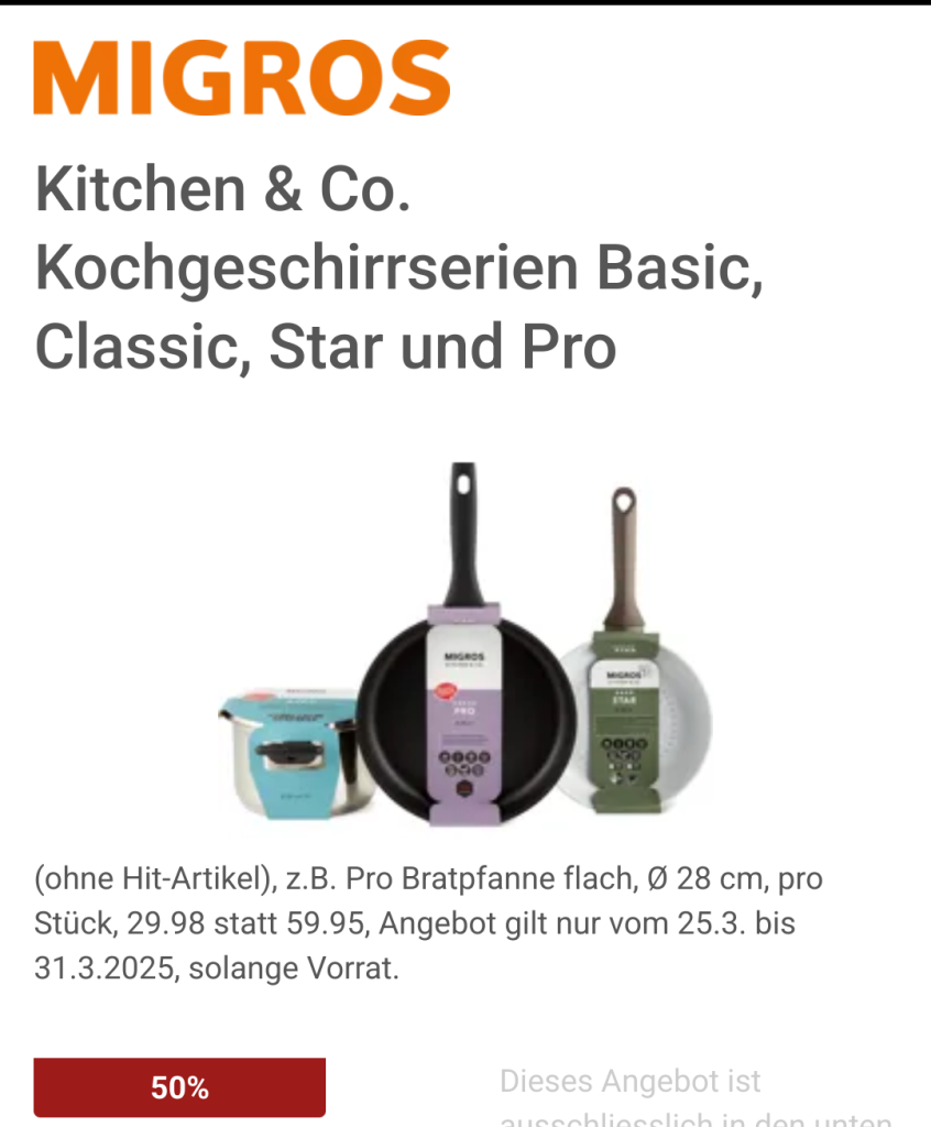 Es gibt wieder mal 50% auf fast alle Bratpfannen und Kochgeschirr.