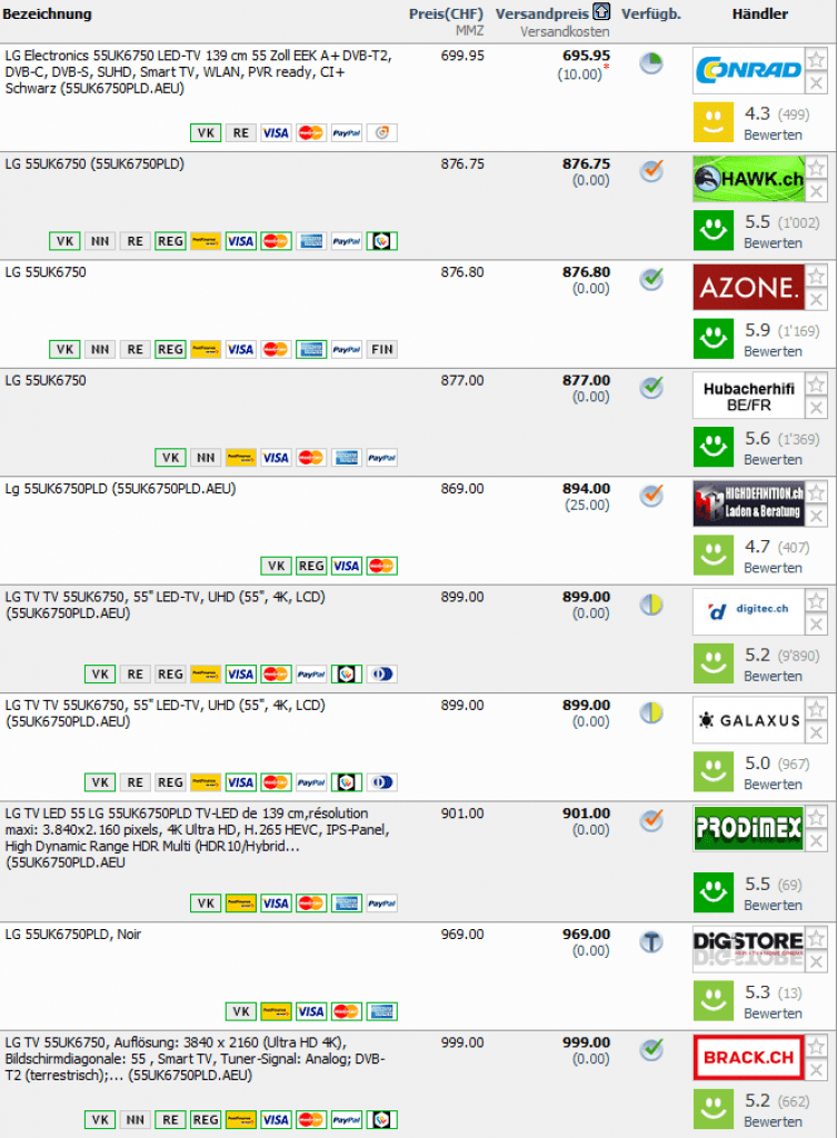Bei conrad gibt es aktuell den 55″ TV LG ELECTRONICS 55UK6750 für 699.95 CHF (+ 10.- CHF Versandkosten).