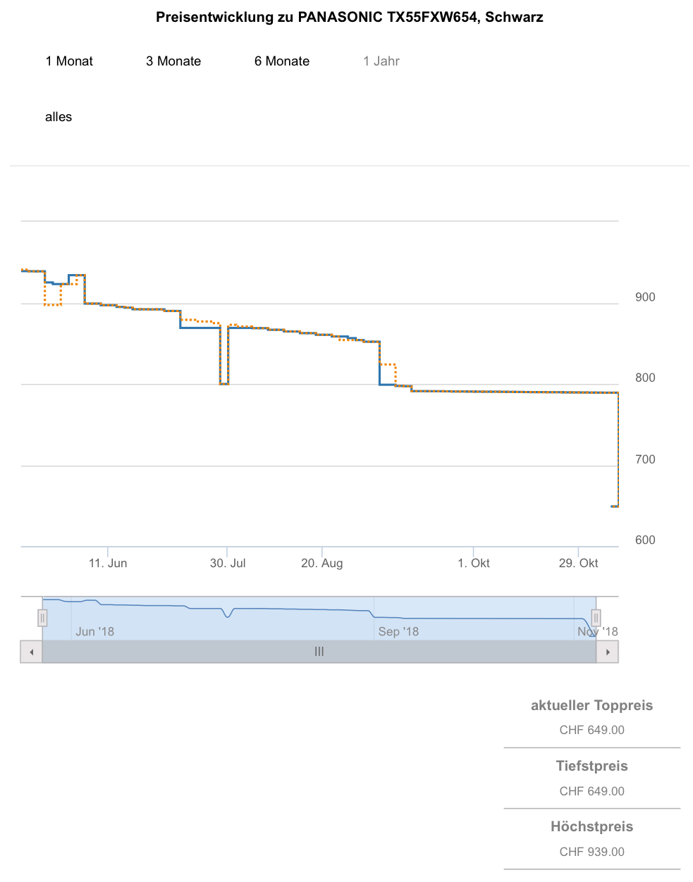 Gemäss toppreise war der best price bislang bei 769.- CHF, der zweitbeste Preis liegt aktuell bei 789.15 CHF.