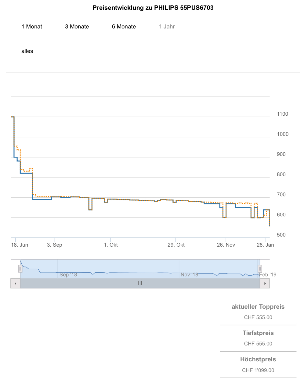 Gemäss toppreise war der bestprice bislang bei 598.- CHF, der zweitbeste Preis liegt aktuell bei 637.40 CHF.