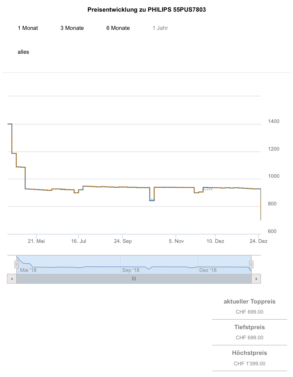 Gemäss toppreise war der bestprice bislang bei 852.- CHF, der zweitbeste Preis liegt aktuell bei 929.50 CHF.