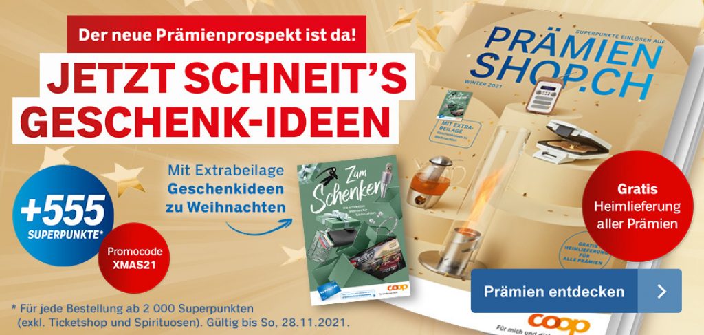 555 extra Superpunkte bei Prämienbestellung im coop Supercard Prämienshop
