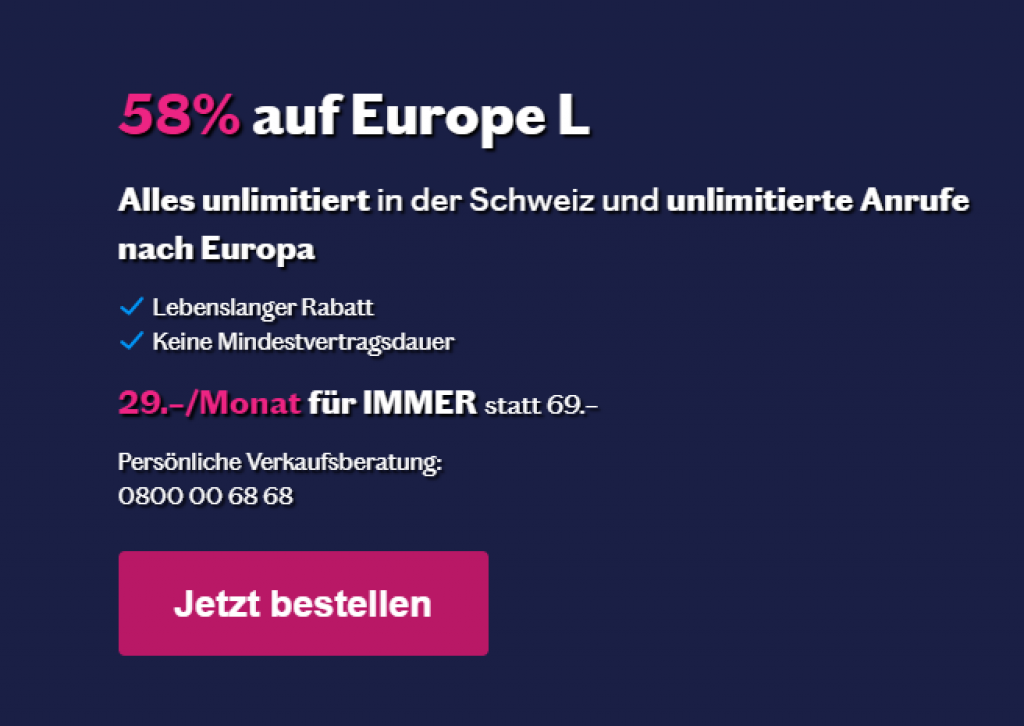 Der Europe L Tarif erhält man für CHF 29.- statt CHF 69.-.