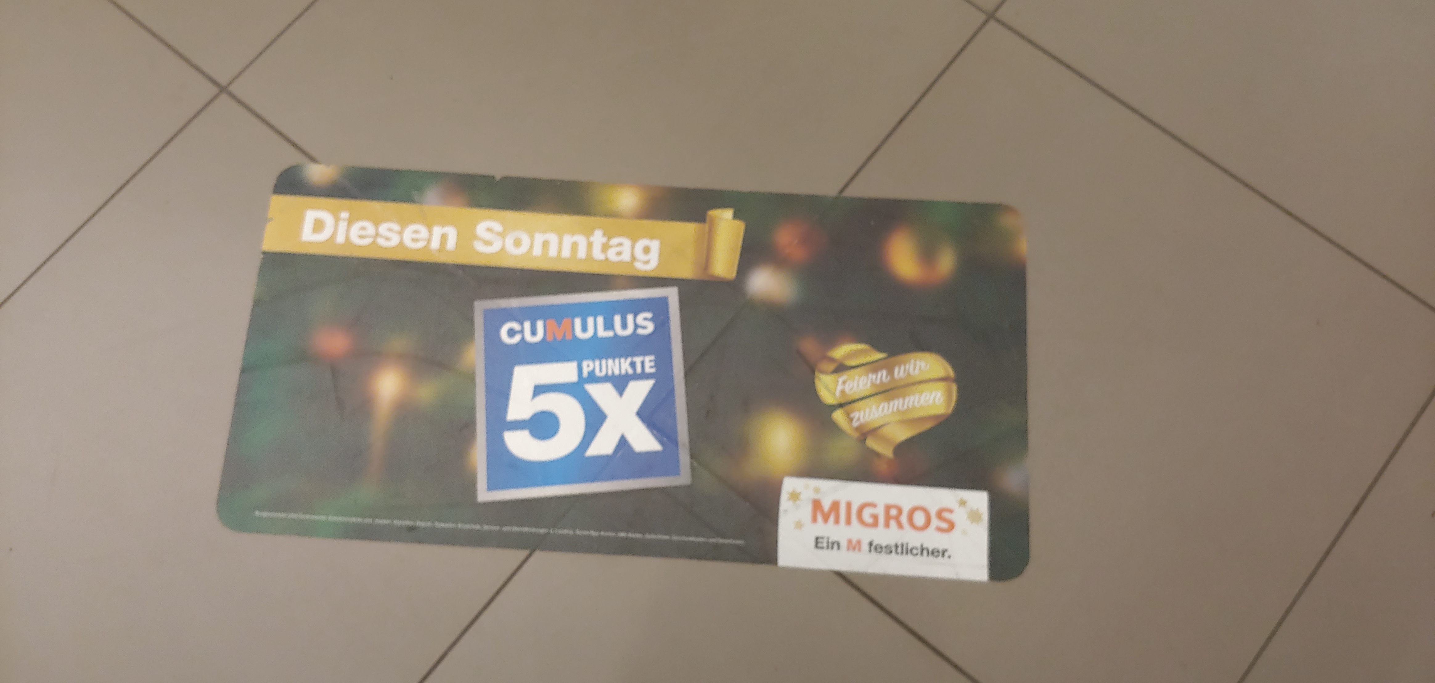 Aktuell gibts wohl bis zur Weihnachtswoche jeden Sonntag 5fache Cumulus-Punkte in der Migros am Flughafen Zürich. Ihr solltet dazu keinen Code brauchen und einfach nach dem Zahlen die Punkte verfünffacht erhalten.