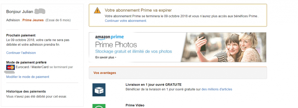 - Nach Bestellabschluss, kündige dein Prime Frankreich Konto direkt wieder. Klicke oben auf Bonjour DEINNAME -> votre comte Amazon Prime -> Ne pas continuer - Renoncer aux avantages Amazon Prime -> Mettre fin à mes avantages -> Ne pas continuer