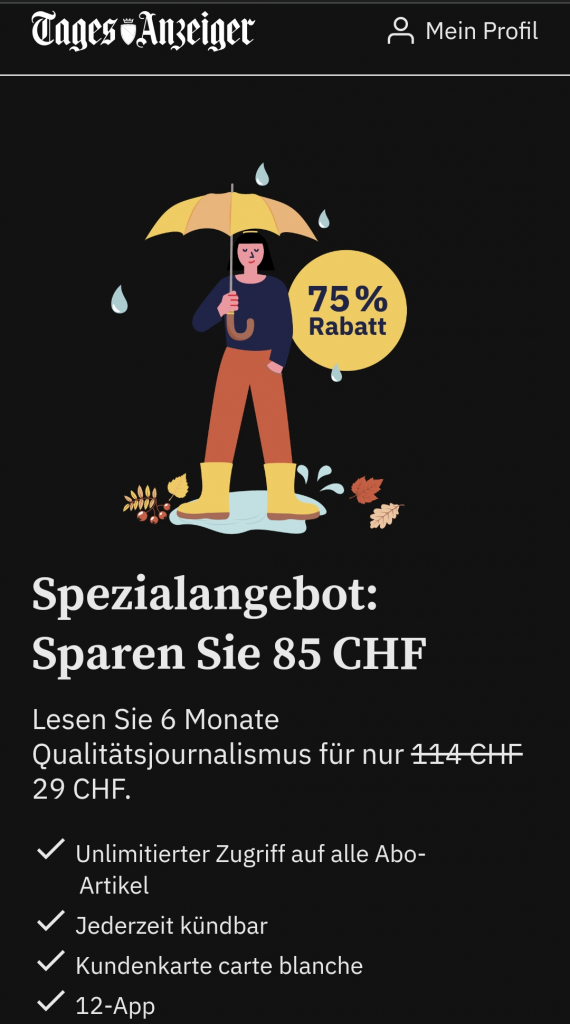 6 Monate Tagesanzeiger.ch Digital für 29.- CHF.