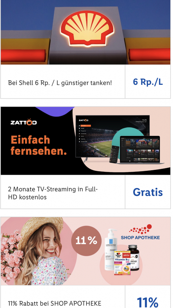 Mit der Lidl Plus App spart man ab dem 4. August nicht nur bei Lidl, sondern auch bei vielen Partner Shops wie beispielsweise Shell, Zattoo, Shop Apotheke…