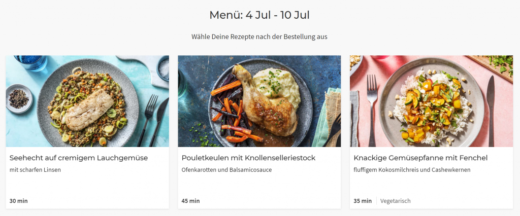 Wie immer der Hinweis: wenn ihr jemanden kennt mit Hellofresh-Account (ich glaube, das Abo muss nicht einmal aktiv sein), dann lasst Euch werben. Dann gibt es 50 CHF Rabatt auf die erste Box, das ist bei den 2-Personen-Boxen mehr als 60%. Und der Werber bekommt auch noch 30 CHF Guthaben. Der Gutschein hier lohnt sich also nur, wenn ihr niemanden kennt, oder die grosse Box bestellen möchtet und euch nicht mit dem Werber über seinen Anteil einigen könnt.
