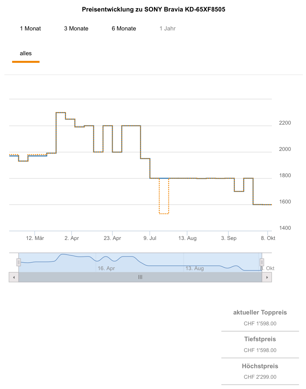 Best price bislang waren 1429.90 CHF, der zweitbeste Preis liegt aktuell bei 1598.- CHF.
