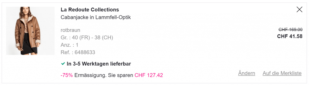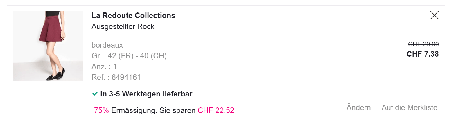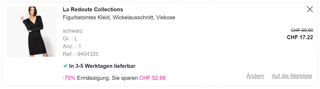 La Redoute gibt im SALE so richtig Gas! Die ersten Artikel sind bereits um 70% reduziert und mit unserem Gutscheincode „2018“ gibt’s noch einmal 18% Rabatt auf alle reduzierten Artikel aus dem Bereich Mode, Home und Luxus. Ab einem Bestellwert von CHF 90.- wird zudem gratis geliefert. Die Aktion läuft noch bis am Montag um Mitternacht.
