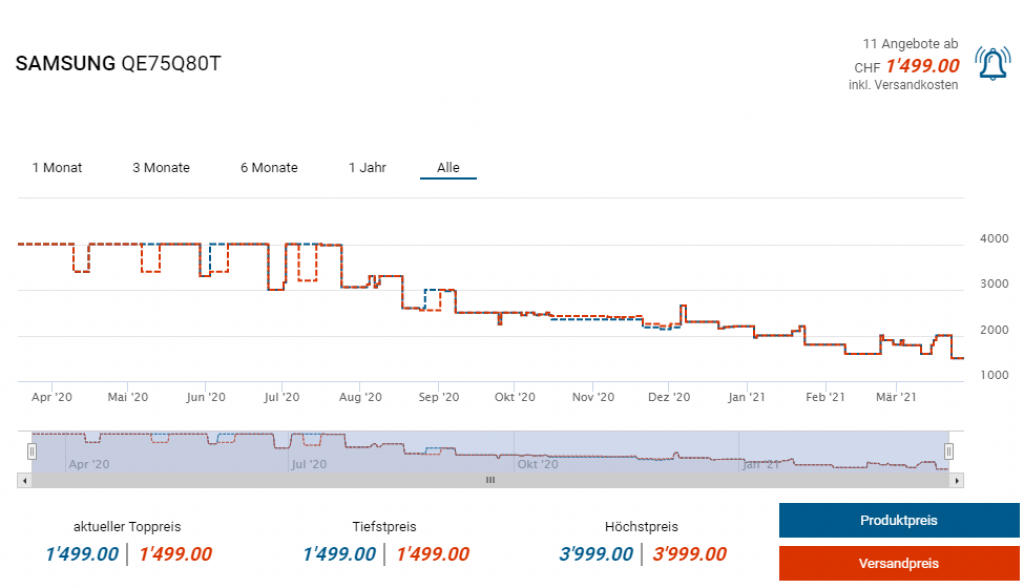 Zuletzt lag der bisherige Bestpreis in einem Deal von Fust bei 1580 Franken.