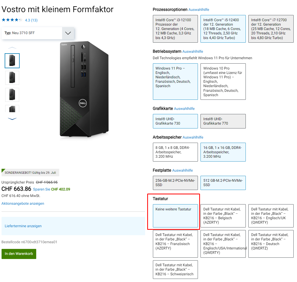 Zum Beispiel könnt ihr so die Tastatur mit Kabel entfernen, wodurch der Preis nochmals um über 30 Franken schrumpft.