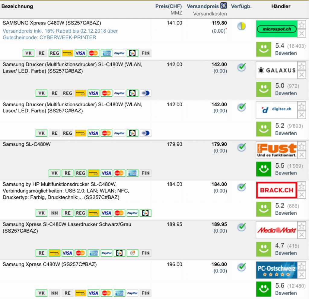 Gemäss toppreise gab es den Drucker am BlackSaturday für 99.- CHF (ärger mich das ich das verpasst habe), ansonsten gab es den Drucker nur ab 149.- CHF aufwärts. Der zweitbeste Preis aktuell sind 142.- CHF.