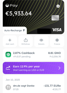 Ok danke, mit Revolut würde ich es trotzdem nicht vergleichen. Revolut kann man auch nutzen, ohne eine Ahnung von Krypto zu haben. Für GnosisPay muss man sich da schon einlesen. Ist nur etwas für Kryptointeressierte. Andere nehmen lieber Radicant für Fremdwährungs-Kartenzahlungen zum Interbankenkurs.