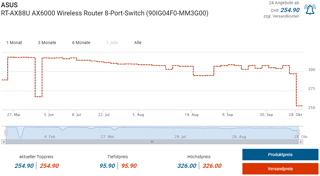 Der RT-AX88U ist ein 4×4 Dual-Band WLAN-Router, der eine Bandbreite von 160 MHz und 1024-QAM für deutlich schnellere drahtlose Verbindungen bietet. Mit einer Gesamtnetzwerkgeschwindigkeit von etwa 6000 Mbit/s - 1148 Mbit/s im 2,4 GHz-Band und 4804 Mbit/s im 5 GHz-Band - ist der RT-AX88U 2,3x schneller als 4×4 Dual-Band-Router, die den 802.11ac-Standard nutzen.