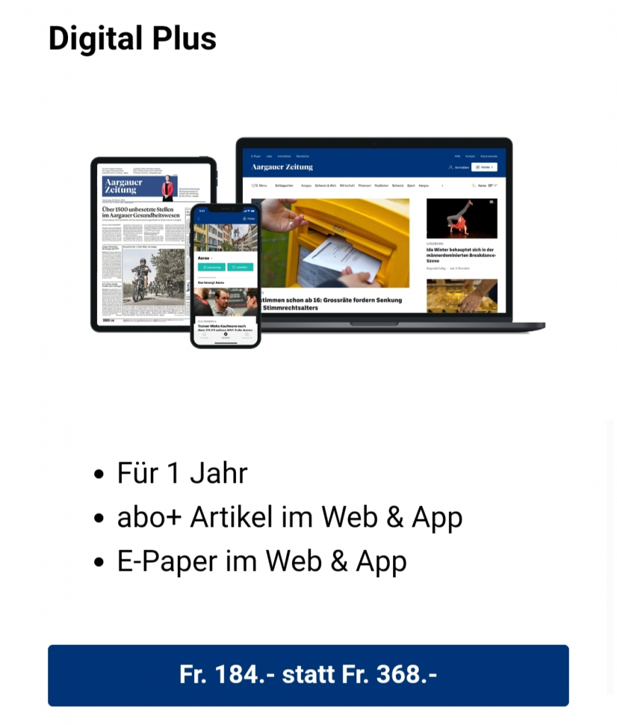 Die Online Ausgabe der Aargauer Zeitung kann noch bis zum 4.12.22 zum halben Preis abonniert werden.