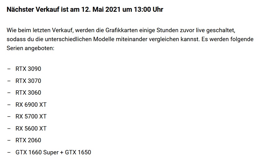Es gibt schon morgen (07.05) gewisse Grafikkarten zum Verkauf!