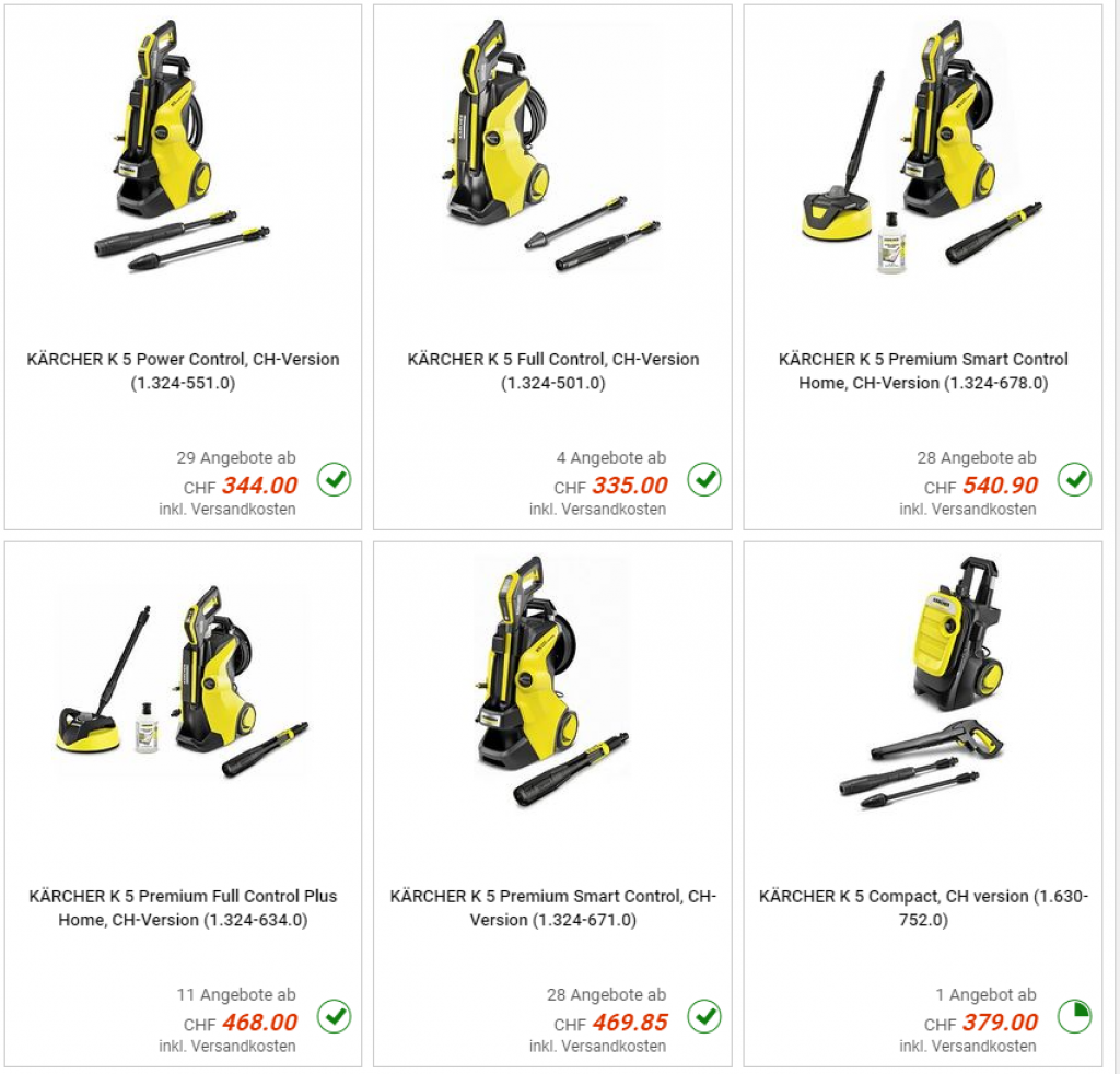 Bei Jumbo gibts derzeit den Hochdruckreiniger Kärcher K5 Full Control Plus zum Aktionspreis von 269 Franken. Mit dem bekannten 15% Gutschein drückt ihr den Preis weiter runter auf noch attraktivere CHF 228.65. Den Vergleich stelle ich mit der scheinbar „normalen“ Full Control“ Version auf, da ich kein Full Control Plus Modell finden konnte.