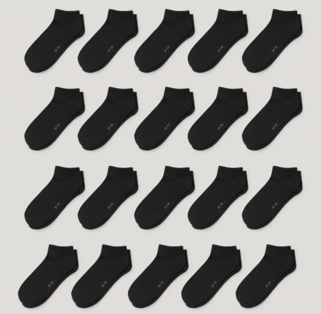 Bei C&A gibt es aktuell ein 20er Multipack - Sneakersocken zum Aktionspreis von CHF 26.95.-. Verfügbar sind die Grössen 35-38 und 39-42 und ich persönlich trage mit der Schuhgrösse 43 eigentlich nur die 39-42 Socken.