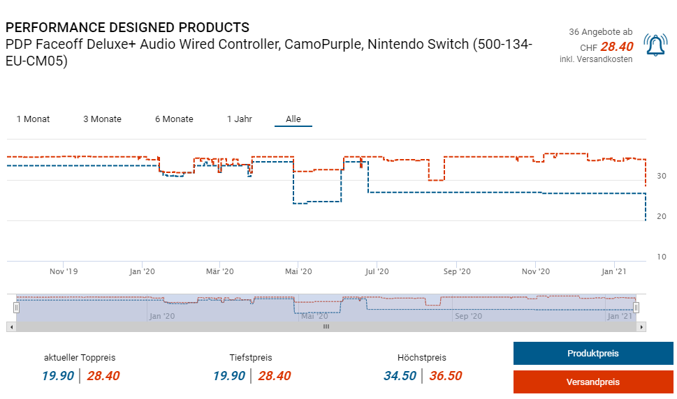 Bei Fust gibts derzeit den Controller mit Kabel Faceoff von PDP zum Aktionspreis von knapp 20 Franken zur Abholung. Bei Versand kommt ihr etwa gleich weg wie wenn ihr von Amazon bestellen würdet, den Schweizer Händlern gegenüber würdet ihr aber dennoch knapp 6 Franken sparen.