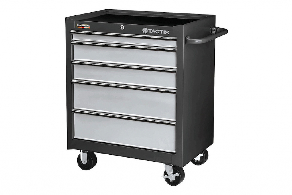 Bei Jumbo gibt es aktuell den Tactix Werkstattwagen mit 5 Schubladen (82×68×46cm) zum Aktionspreis von CHF 134.55 zu ergattern. Im Warenkorb müsst ihr noch den Gutscheincode aus dem Deal eingeben, um auf den genannten Preis zu kommen.