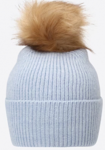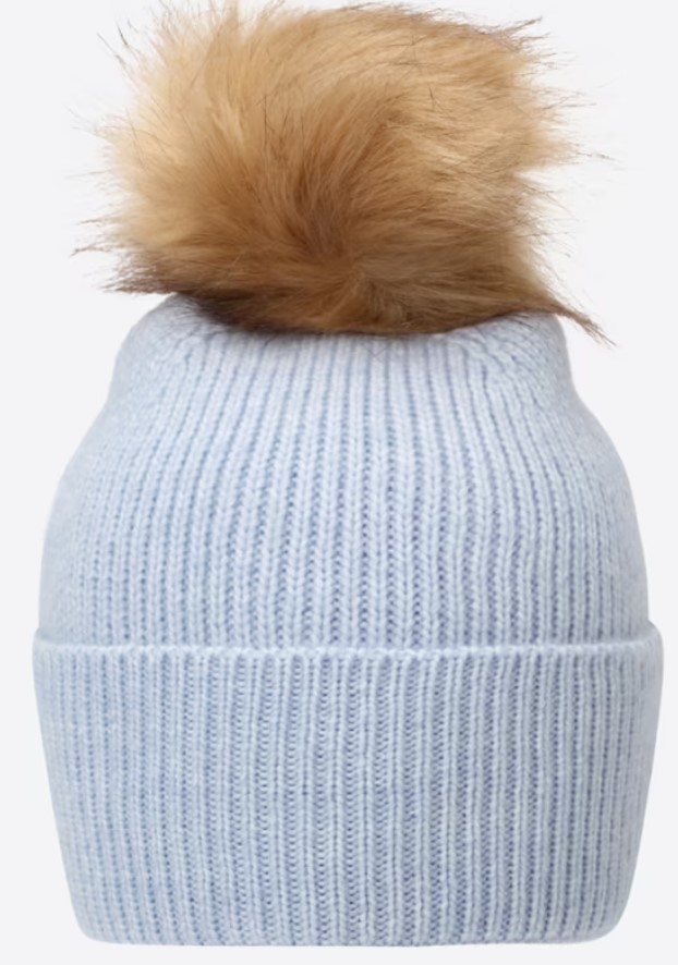 Bei About You im Sale: Damen Mütze Bina Pieces hellblau Unifarben Umgeschlagener Saum Bommel/Pompoms Strukturierter Griff Weicher Griff Recyceltes Polyester