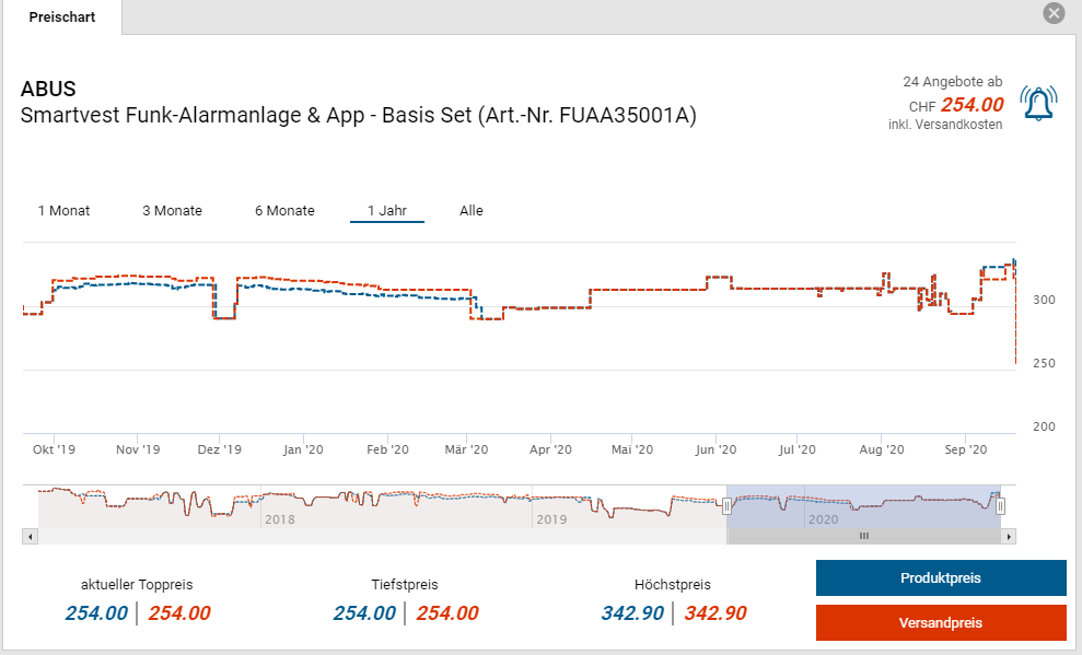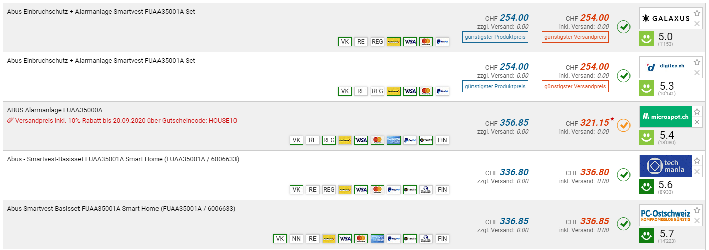Bei Galaxus und dem Partner Digitec gibt es die ABUS Smartvest Funk-Alarmanlage für den neuen Bestpreis von CHF 254.-. Der vorherige Bestpreis war CHF 289.-. Der zweitbeste Preis beträgt CHF 321.15.