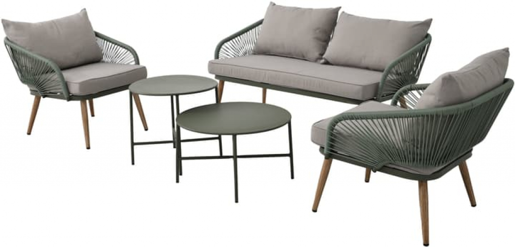 Die SOLIS Gartenlounge ist die perfekte Wahl für alle, die ihren Garten in eine gemütliche Wohlfühloase verwandeln möchten. Das Set besteht aus einem 2er Sofa, zwei Sesseln und zwei Couchtischen in verschiedenen Größen. Das pulverbeschichtete Stahlrohrgestell in Grün ist nicht nur robust, sondern auch ein echter Hingucker. Die bequemen Kissen in Taupe sorgen für zusätzlichen Komfort. Dank des geringen Platzbedarfs passt die Lounge auch auf kleine Terrassen oder Balkone. Die Montage ist einfach und schnell erledigt. Mit einer Belastbarkeit von 300 kg und einer Garantie von 2 Jahren ist die SOLIS Gartenlounge ein langlebiger Begleiter für entspannte Stunden im Freien.