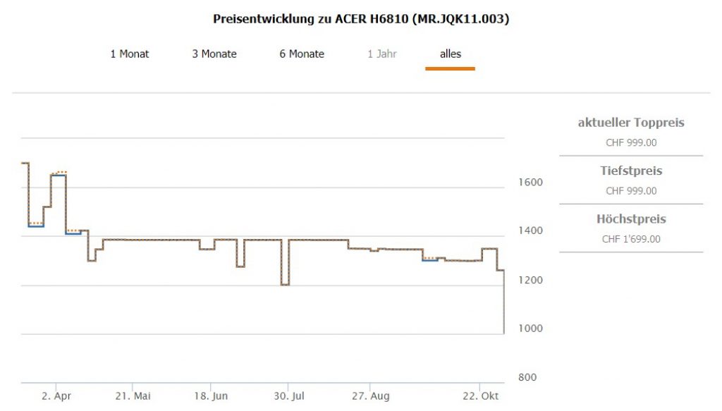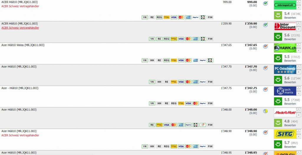 Bei microspot gibt’s gerade den ACER H6810 4K Projektor für CHF 999.- Bestpreis bisher war bei CHF 1’199.90, momentan zweitbester Preis in der Schweiz liegt bei CHF 1’259.90 Mit dem Gutscheincode HFWMSP20 spart man noch einmal 20 Franken.